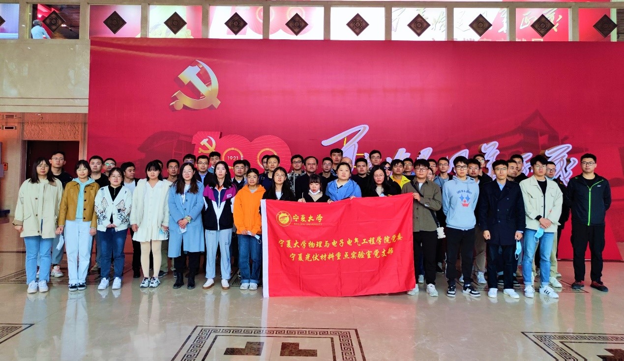 2021年10月9日,宁夏光伏材料重点实验室党支部开展党史学习教育主题党日活动,参观自治区档案馆举办的“百年恰是风华正茂”主题档案文献展,全体师生党员和二、三年级研究生参加活动。