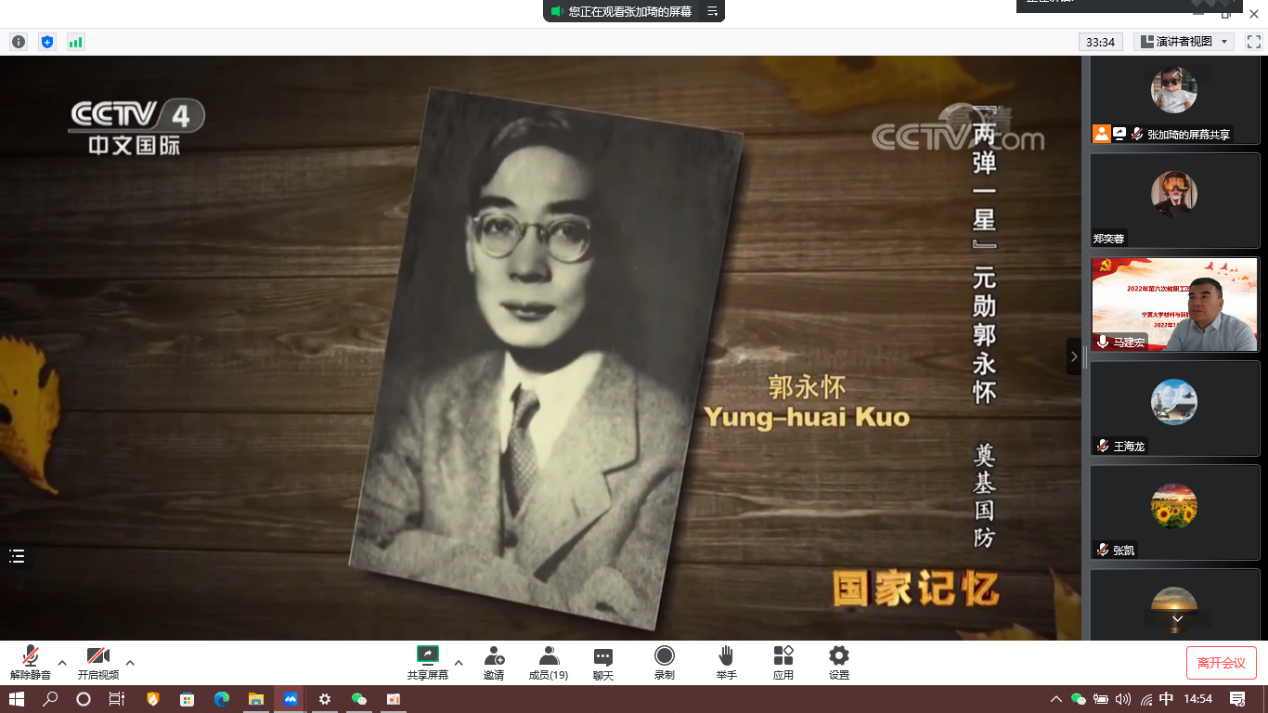 最后,全体教职工观看了《缅怀英烈:“两弹一星”元勋郭永怀》纪录片,第2、3集。