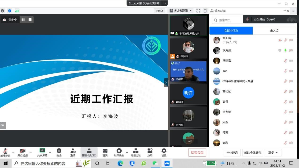李海波副院长汇报了疫情防控、研究生培养、科研工作、实验室建设等工作情况。