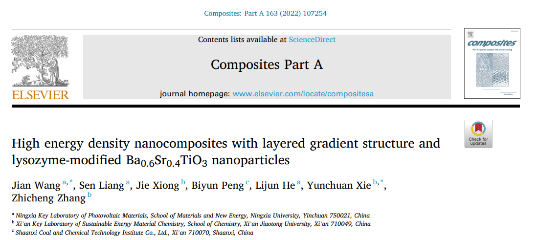 王健课题组在高储能复合电介质取得重要科研进展,相关结果以“High energy density nanocomposites with layered gradient structure and lysozyme-modified Ba0.6Sr0.4TiO3nanoparticles”为题发表在国际复合材料领域顶级期刊《Composites Part A: Applied Science and Manufacturing》,av狼