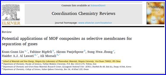 Ali Morsali教授、刘宽冠教授在国际期刊⟪Coordination Chemistry Reviews⟫(IF = 20.06,中科院一区TOP)上发表了题为“Potential applications of MOF composites as selective membranes for separation of gases”的高水平综述文章。av狼