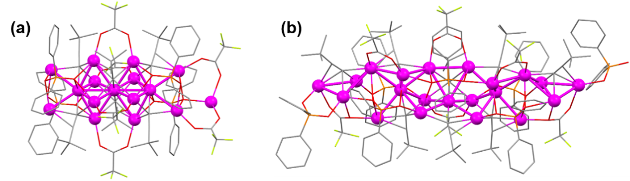 图2(a) 16核银簇的结构;(b) 21核银簇的结构