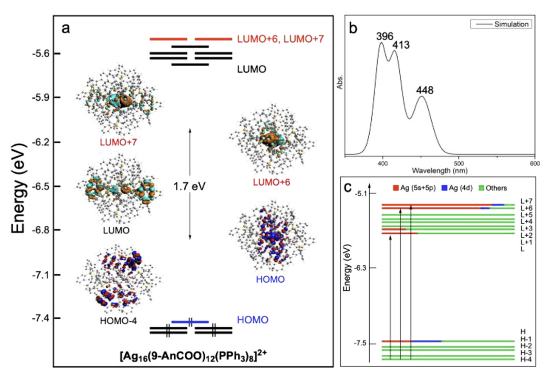图1[Ag16(9-AnCOO)12(PPh3)4]2+团簇的电子结构