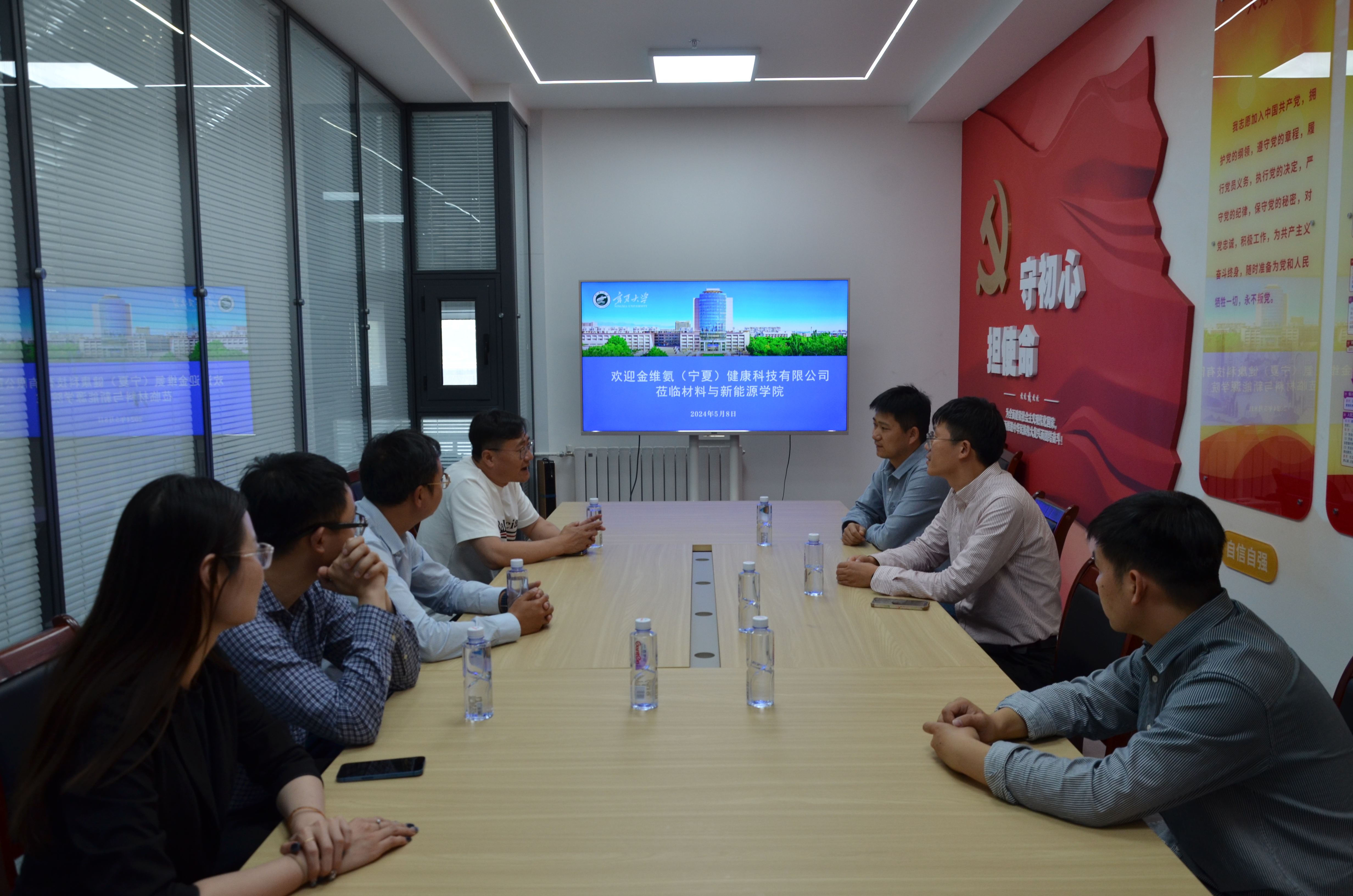 5月8日下午,金维氨(宁夏)健康科技有限公司董事长徐凤鸣,总经理胡安娜,副总经理张悦凯、韦刚一行4人来av狼