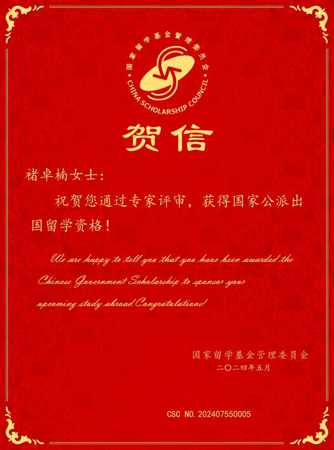 2022级硕士研究生褚卓楠同学,获批“2024年国家留学基金资助出国留学人员”资格,赴澳大利亚伍伦贡大学(University ofWollongong)攻读博士学位研究生。这是av狼