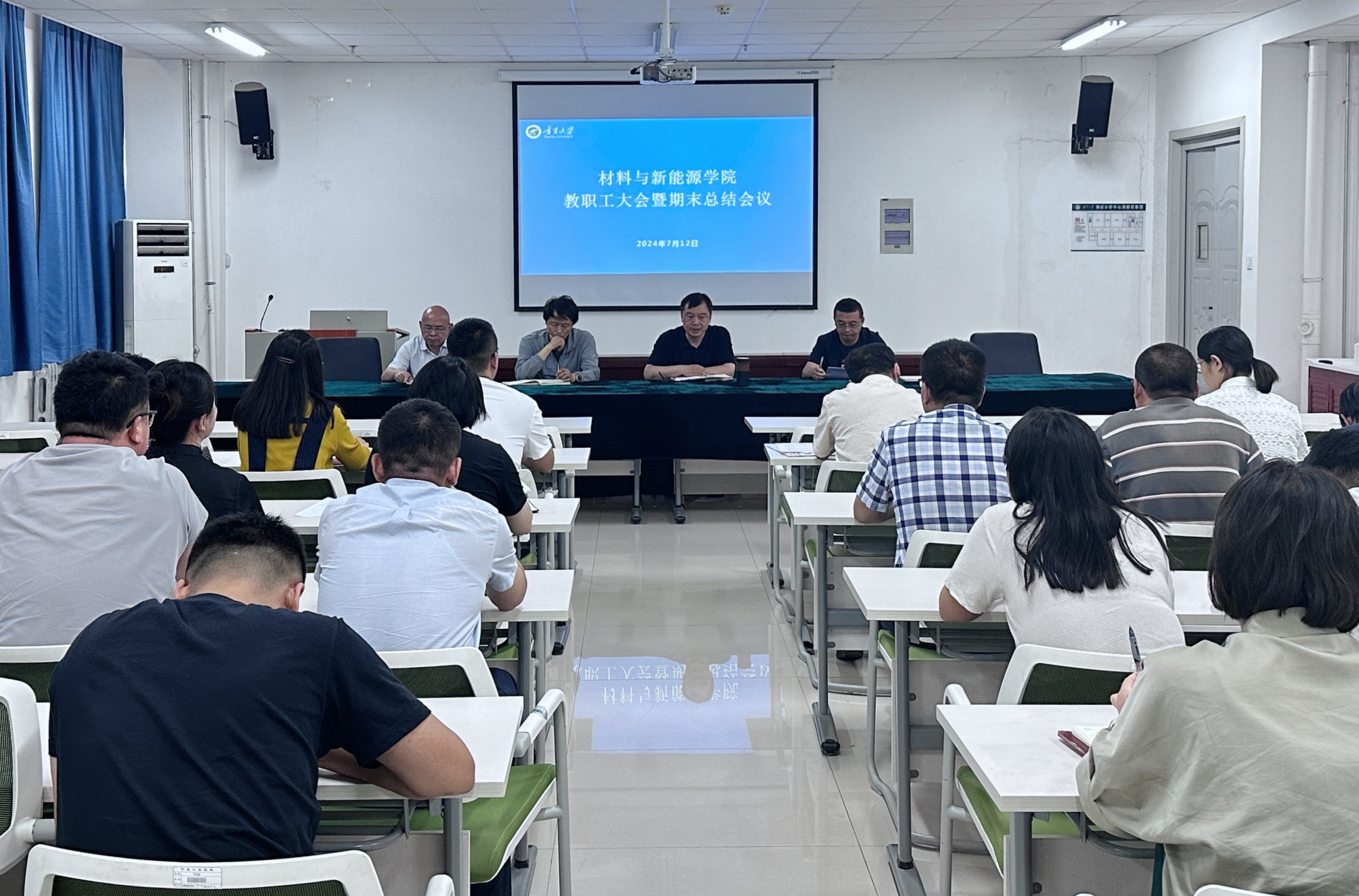 召开2023-2024春季学期期末总结会议,会议由院长夏明许主持,学院全体领导班子及全体教职工参加会议。