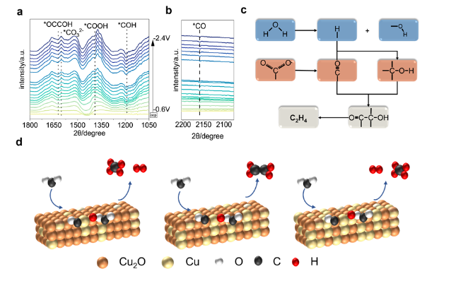 电化学CO2还原反应(eCO2RR)因其能够将CO2转化为有价值的化学品,成为科学界和工业界的研究焦点。然而,由于C2+路径与C1路径存在部分耦合(包括*CO和*CHO的形成),电化学预重构调控引发的C1/C2+路径转换机制不明,严重制约了高效铜基催化剂的设计进展,进而阻碍了对目标碳产物的精准调控。