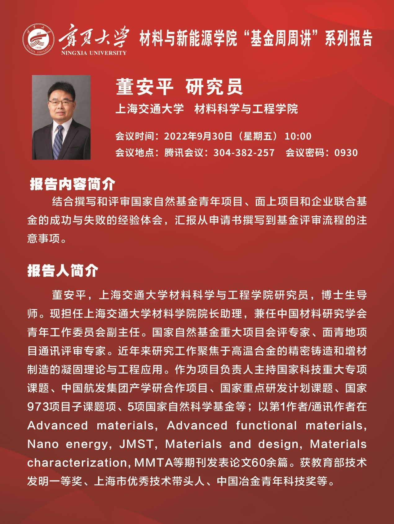 学院全体教师,及化学与化工学院、物理与电气工程学院、北方民族大学材料学院等单位相关领域教师聆听了报告。