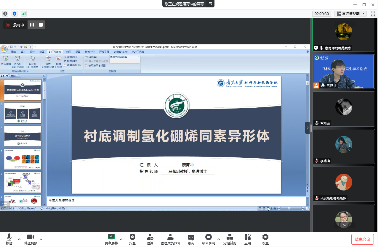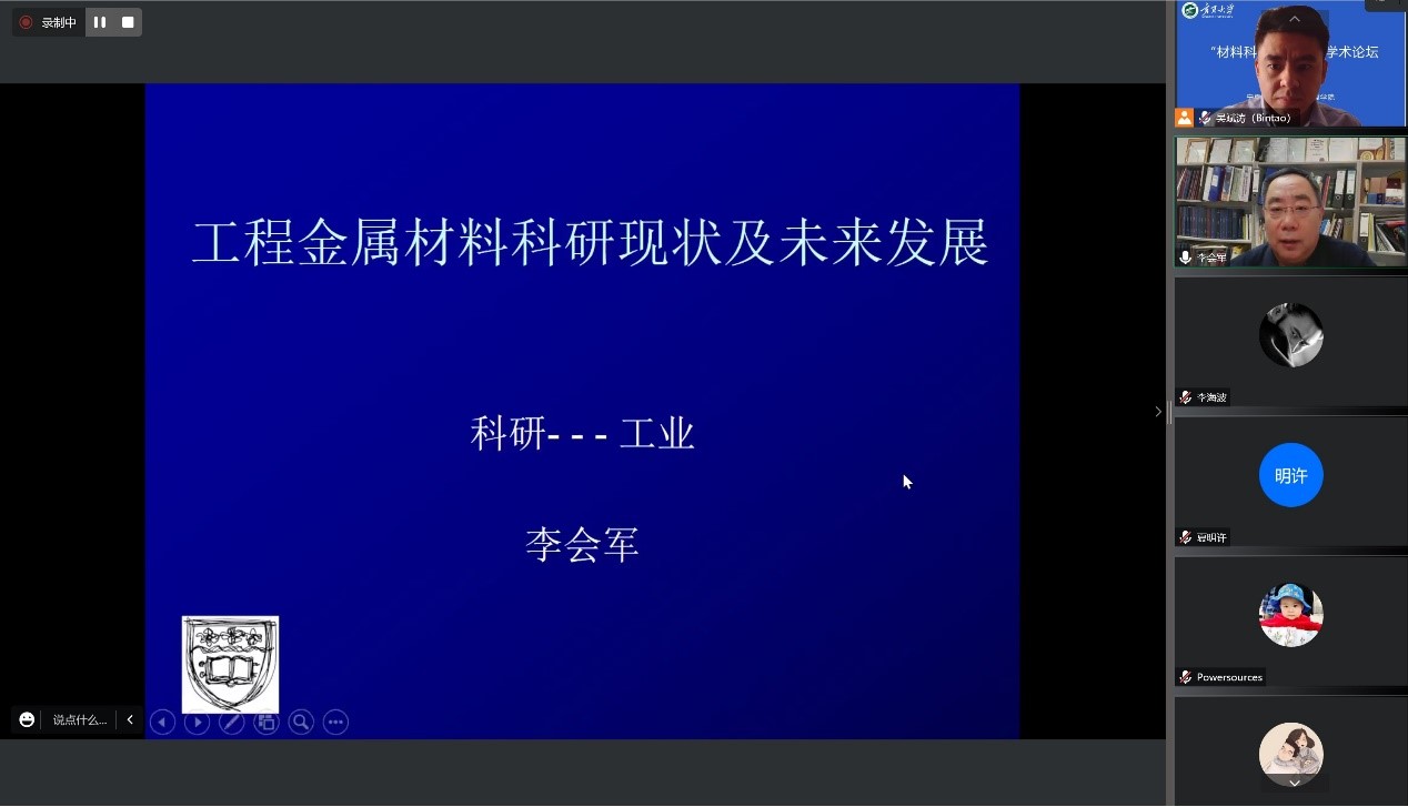 2022年11月13日,学院通过线上形式举办了“材料科技”研究生学术论坛。论坛由李海波副院长主持,澳大利亚伍伦贡大学李会军教授,澳大利亚核科学与技术组织王志阳研究员主讲,学院全体师生参加,来自西安交通大学和北方民族大学材料类专业的研究生也积极参与了本次论坛。