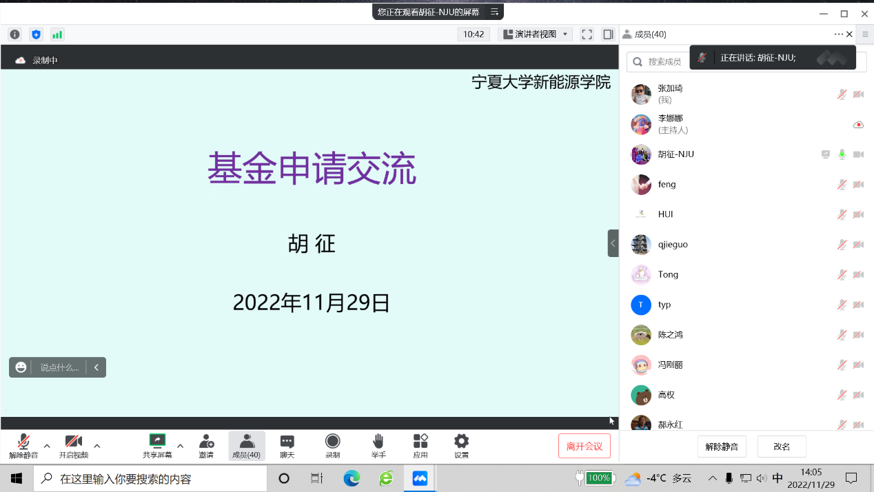 2022年11月29日下午,学院通过线上会议形式举办了“基金周周讲”第八期报告,邀请南京大学胡征教授主讲,av狼 及相关学院教师参加,报告会由学院院长夏明许主持。