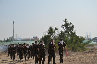 苦不苦,想想长征二万五;累不累,想想革命老前辈!一路上,我们相互鼓励,相互搀扶,先后经过防空袭,防生化演练,以及口令传递训练。同学们或突然迅速卧倒,或迅速掩住口鼻通过烟雾区,在激动兴奋中,勇往直前!